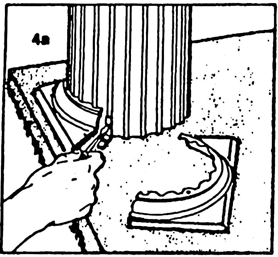 4-A. Cut base with hacksaw along diagonal splitting lugs on underside of base.