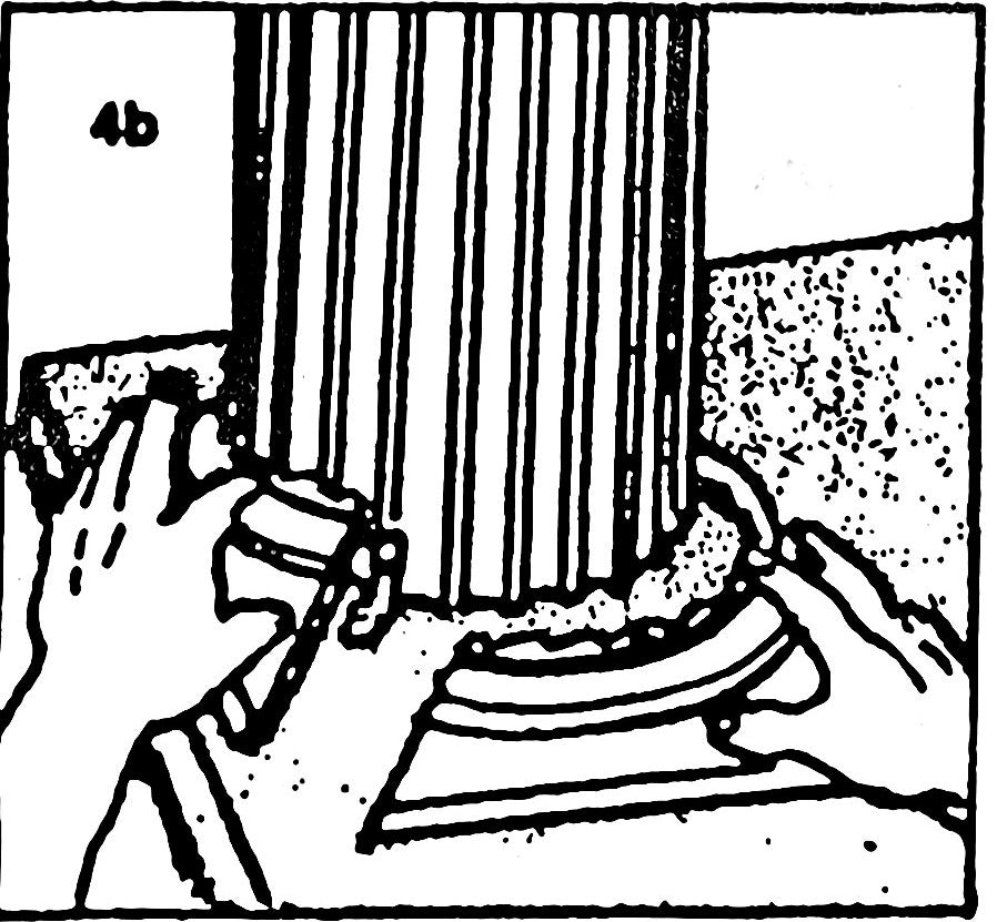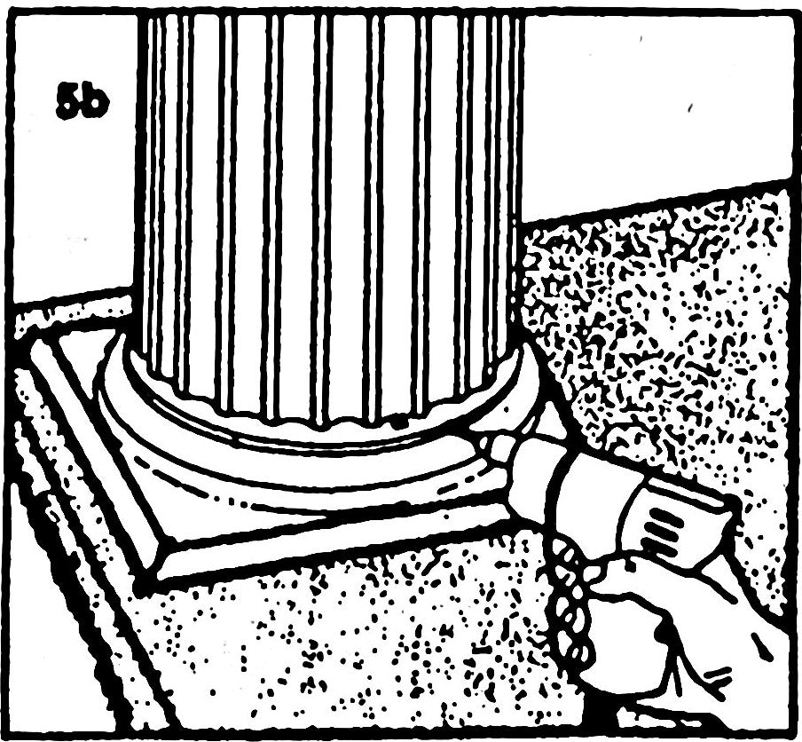 4-B. Place second 1/2 of split base and cap around column and drill three 1/8" holes through base and cap and into column, in line with ribs.